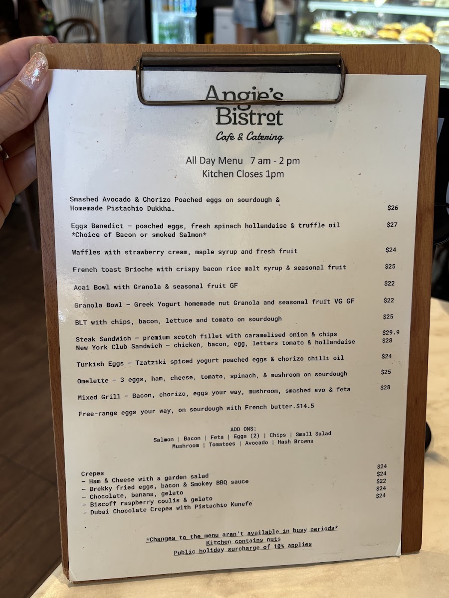 The atmosphere at Angie's is consistently praised, with customers raving about the friendly service and the overall vibe of the cafe. As one reviewer, Tien Nguyen, joyfully exclaimed, "Angie's Bistrot is 100% the best Cafe in Perth." The inviting setting, complete with cozy blankets for added comfort, makes it a favorite spot for a casual brunch with friends, a relaxed meal with your furry companion, or simply a tranquil spot to enjoy a good book.